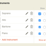 The Noteflight instrument panel has always allowed Premium users to select specific parts of a score for viewing. Now these settings can be saved, allowing users to create custom views of scores. You can save view settings on your original score, or make copies of your score to save multiple versions with specific views. The mixer panel settings are independent of part view, so you have full control of what parts are seen and what parts are heard. Saving instrument display settings allows users to create custom part and playback experiences, which is especially useful with Noteflight’s live audio recording feature.